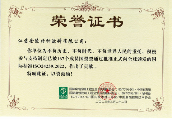 榮譽時刻┃金陵涂料參與制定國際標準并榮獲表彰